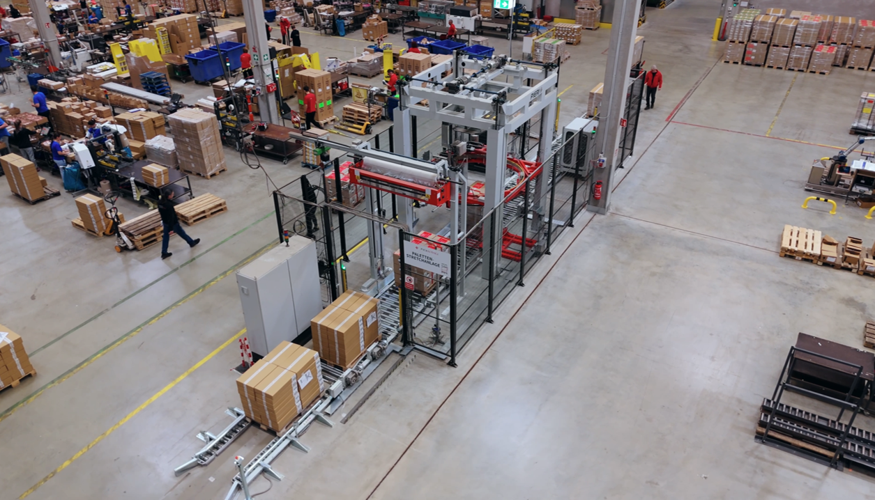 Vollautomatisierung: Standardprozesse wie Paletten wickeln oder Füllmaterialproduktion laufen vollständig automatisiert.